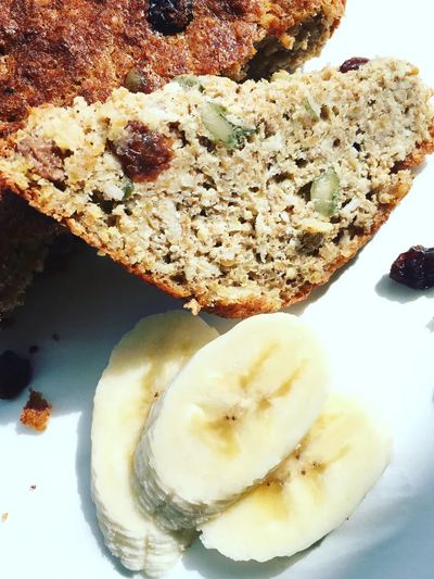 Simply add a mashed banana to your Magic Muffin Mix! Or take it a step further and add some chopped nuts as well and bake in a loaf tin as I have done here.